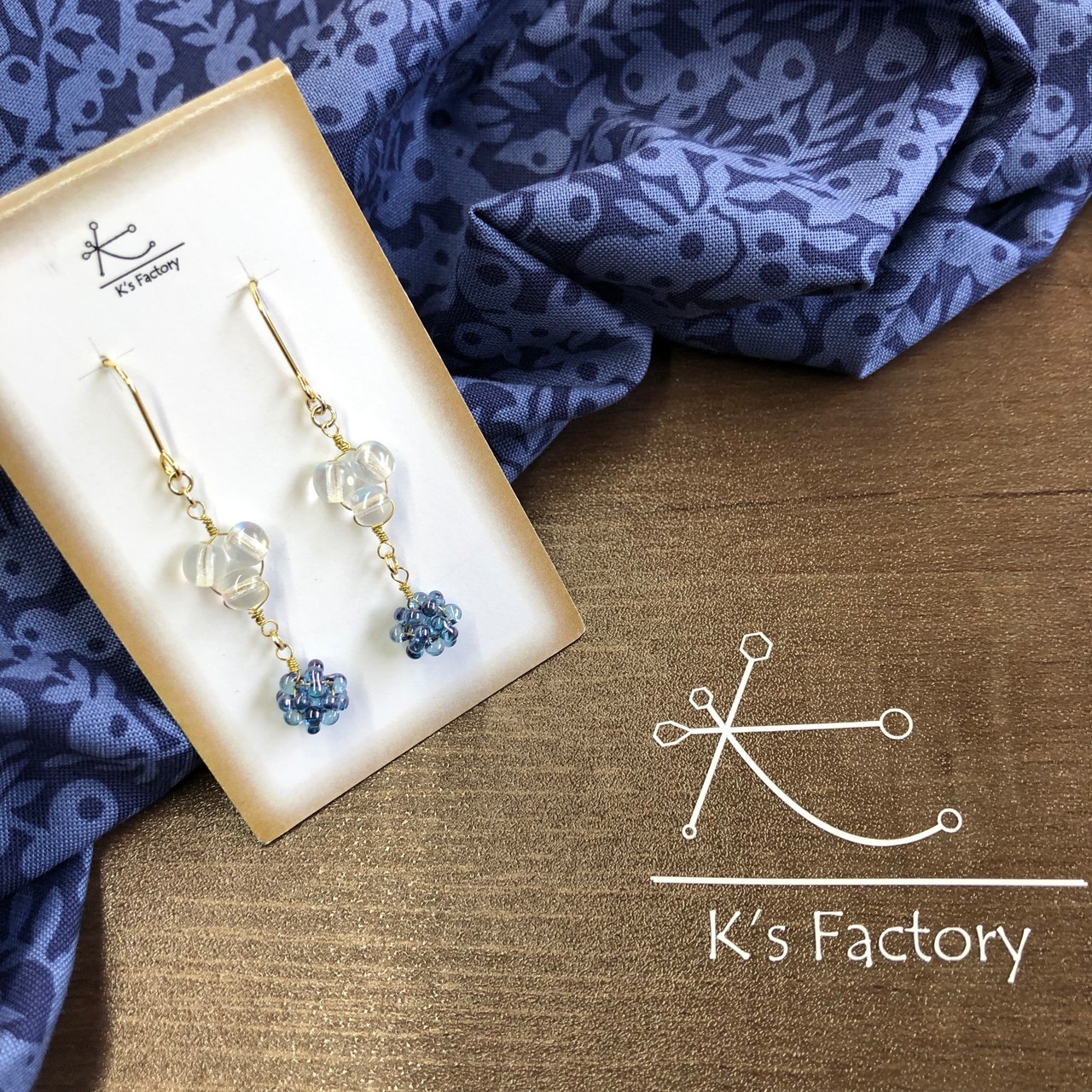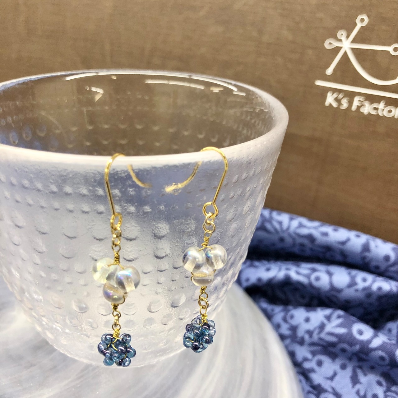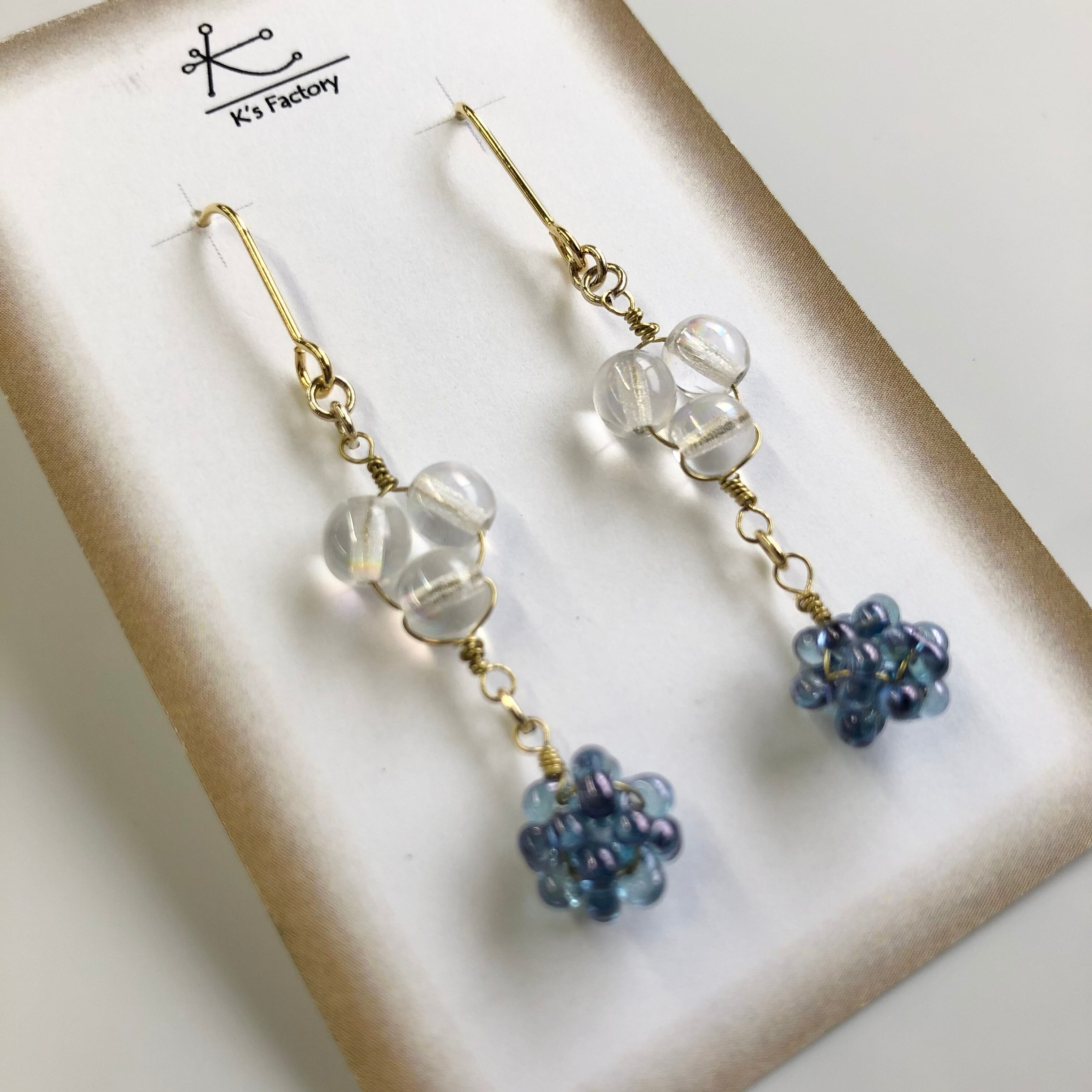 clearビーズとBlueのビーズで涼やかな可愛らしいピアスです。