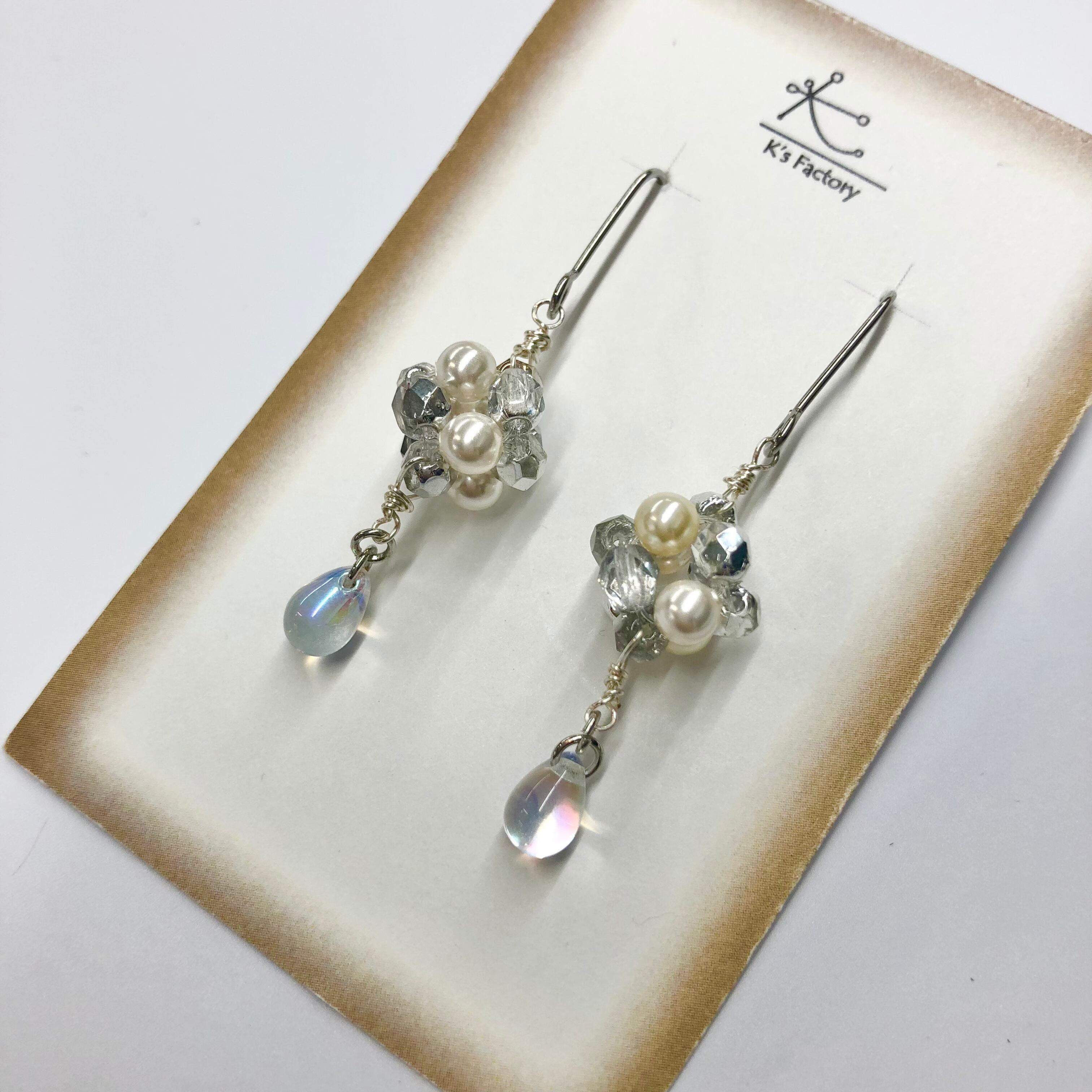 シルバーのビーズとスワロフスキーのパールを合わせて、涼やかで大人なピアスに仕上げました。