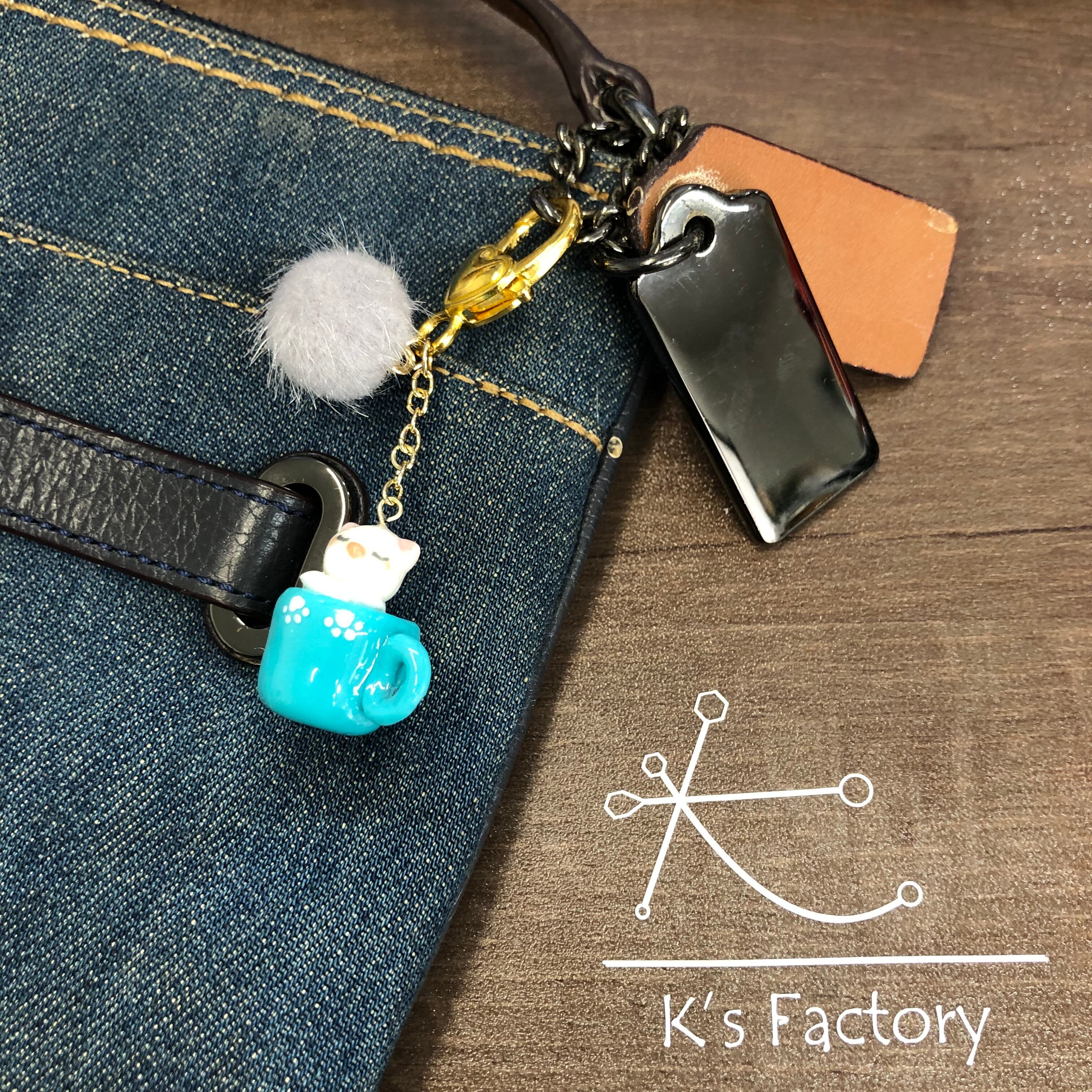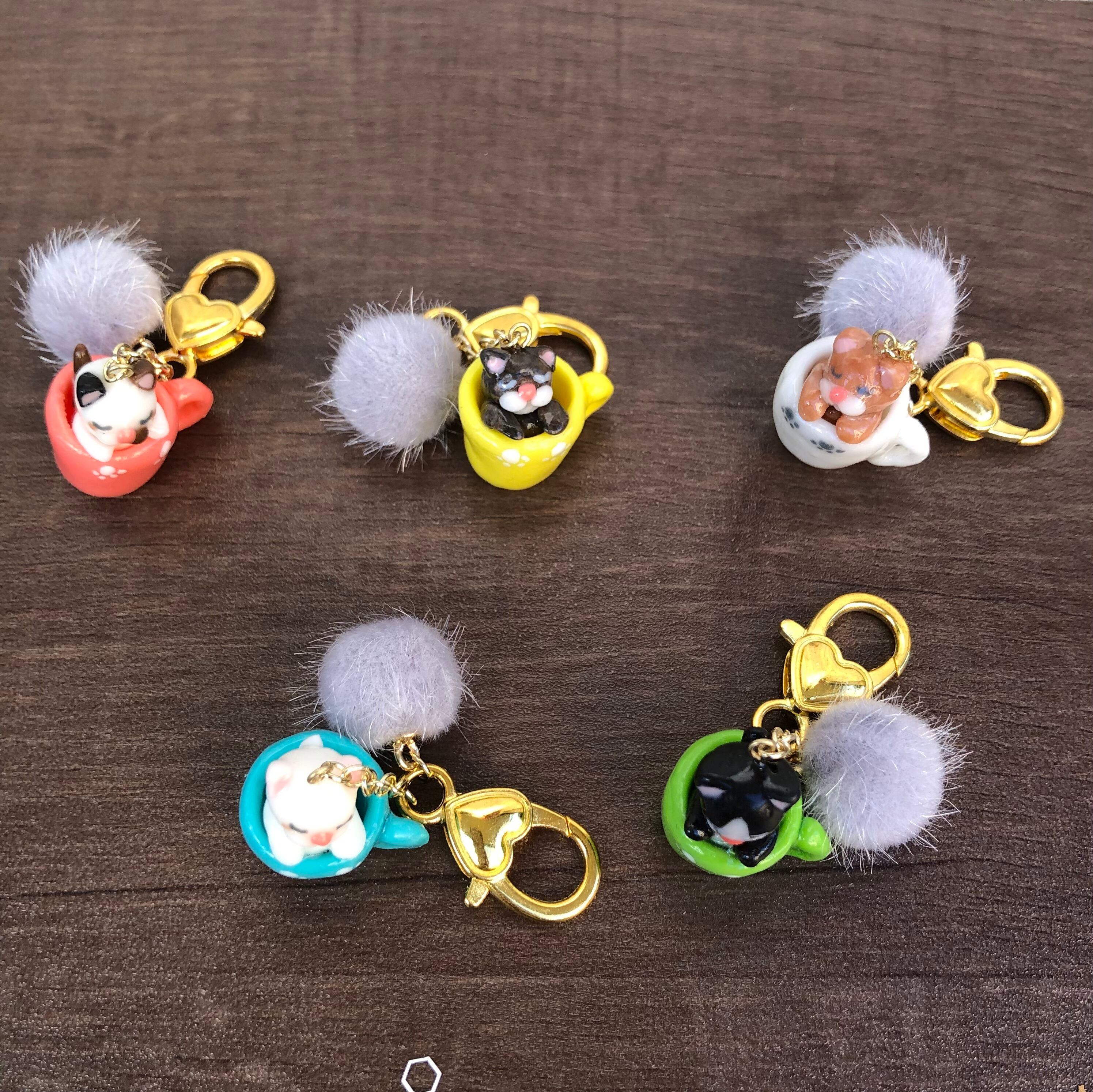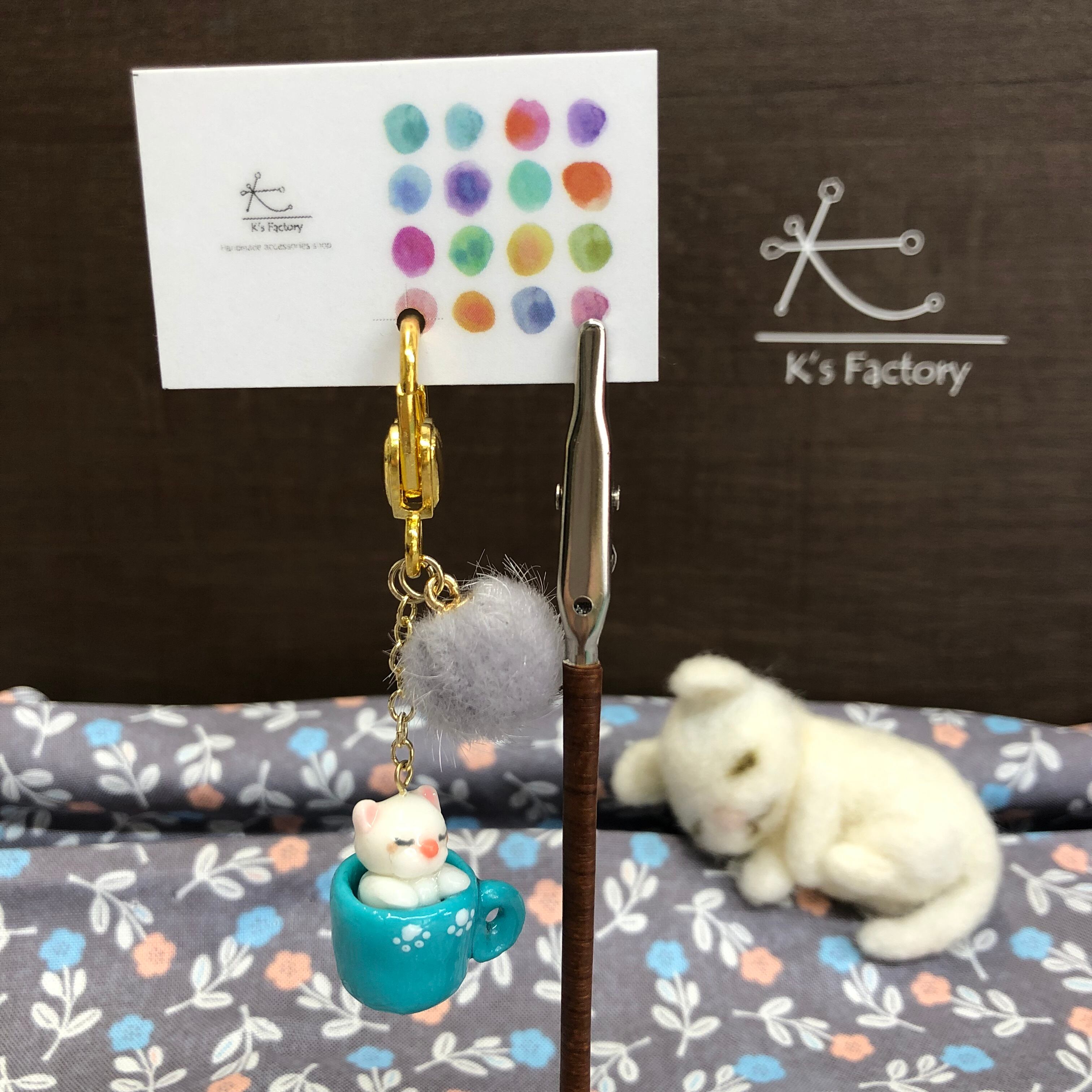 にゃんこがマグカップの中で安心してねむねむ状態のチャームです。