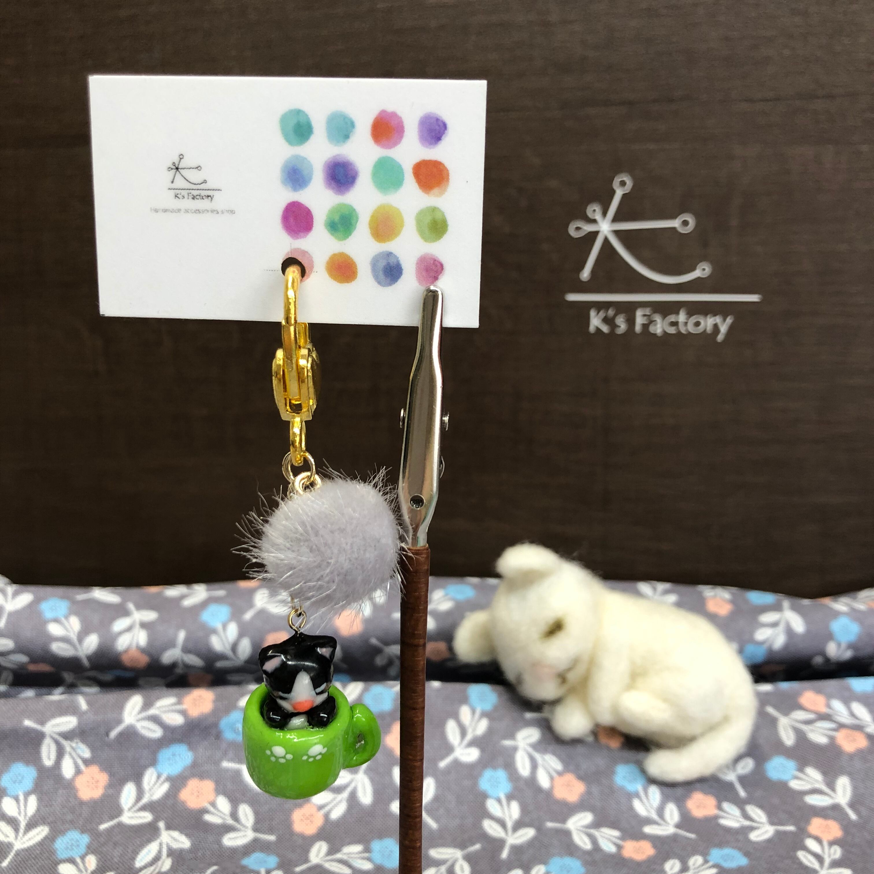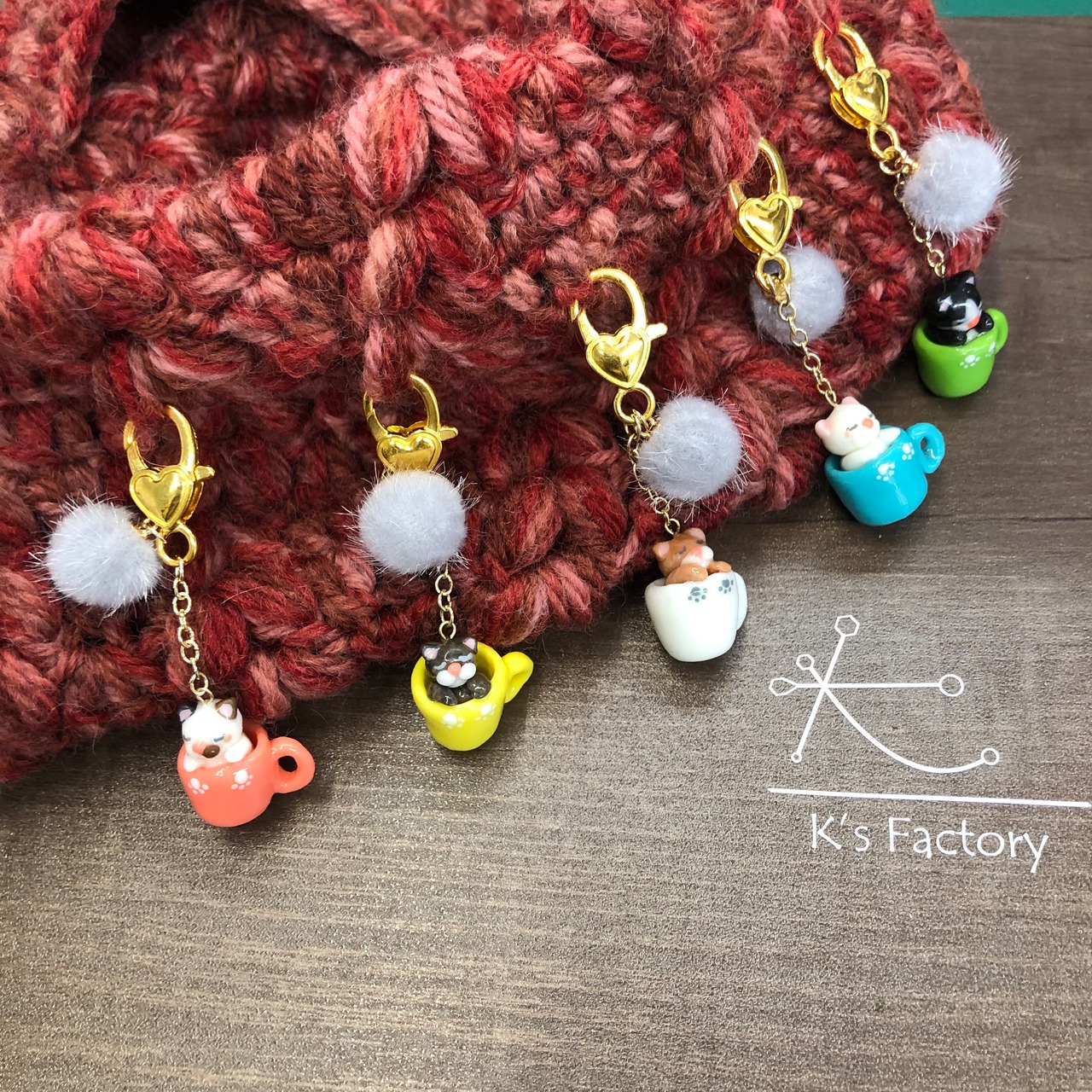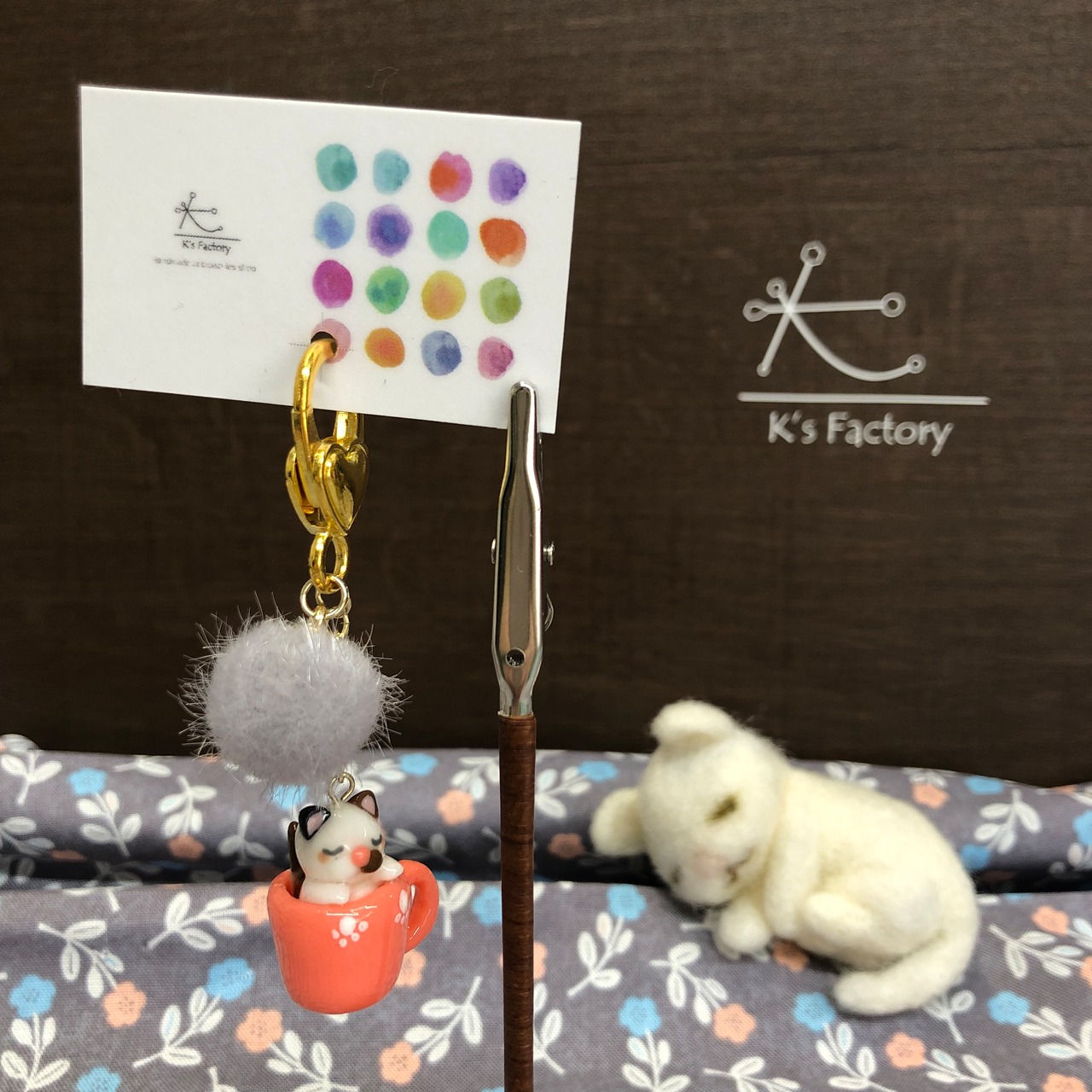 にゃんこがマグカップの中で安心してねむねむ状態のチャームです。