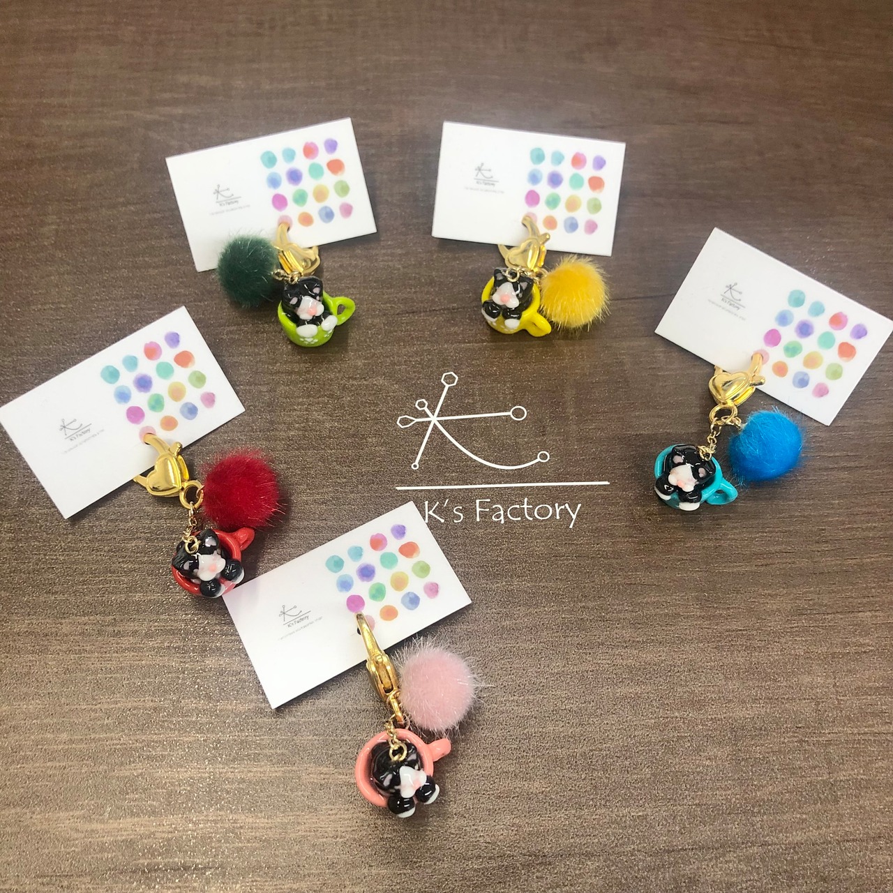 にゃんこがマグカップの中で安心してねむねむ状態のチャームです。
